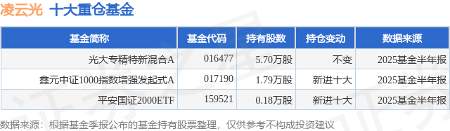 根据2025基金半年报公募基金重仓股数据,重仓该股的公募基金共3家,其中持有数量最多的公募基金为光大保德信基金的光大专精特新混合A。光大专精特新混合A目前规模为0.28亿元,最新净值1.3149(9月25日),较上一交易日下跌0.55%,近一年上涨95.44%。该公募基金现任基金经理为崔书田。崔书田在任的基金产品包括:光大保德信中国制造2025灵活配置混合A,管理时间为2020年7月1日至今,期间收益率为64.02%;光大新增长混合A,管理时间为2022年8月27日至今,期间收益率为-2.12%;光大保德信研究精选混合A,管理时间为2025年3月19日至今,期间收益率为32.3%。