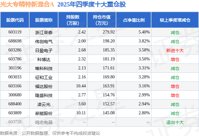 光大专精特新混合A的前十大重仓股如下: