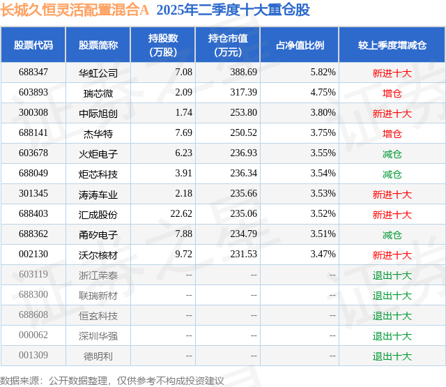 重仓汇成股份的公募基金请见下表: