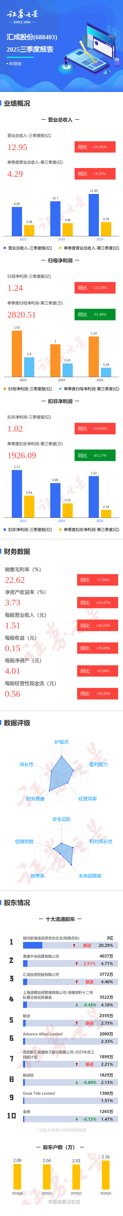 图解汇成股份三季报:第三季度单季净利润同比下降31.48%