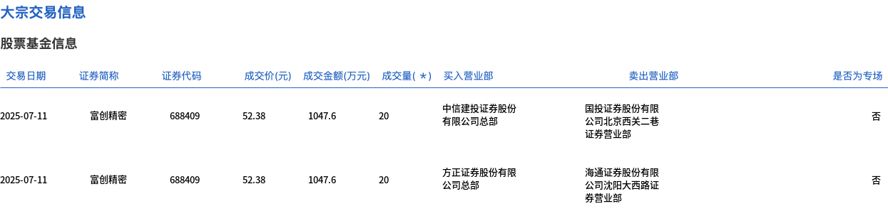 富创精密今日大宗交易折价成交40万股,成交额2095.2万元
