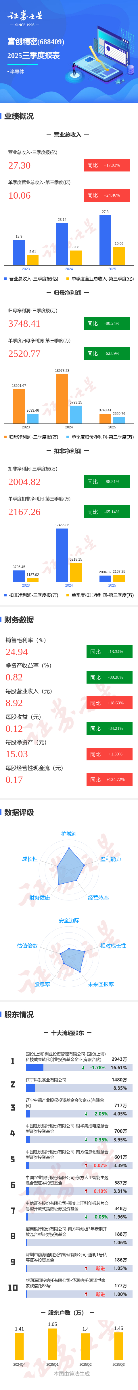 图解富创精密三季报:第三季度单季净利润同比下降62.89%
