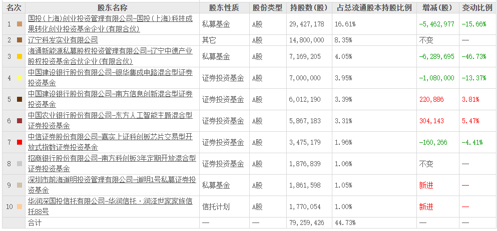 除此之外,海通新能源私募股权投资管理有限公司-辽宁中德产业股权投资基金合伙企业(有限合伙)、中国建设银行股份有限公司-银华集成电路混合型证券投资基金、中国农业银行股份有限公司-东方人工智能主题混合型证券投资基金、中信证券股份有限公司-嘉实上证科创板芯片交易型开放式指数证券投资基金等多个证券投资基金也在其前十大流通股东行列。