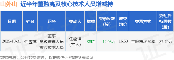 山外山:10月31日高管任应祥减持股份合计12.03万股