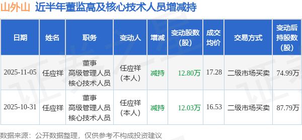 山外山近半年内的董监高及核心技术人员增减持详情如下: