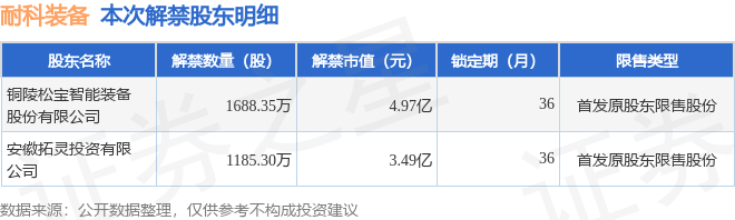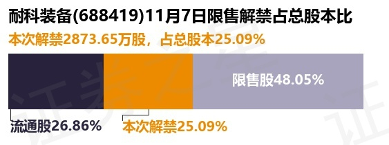 耐科装备(688419)2873.65万股限售股将于11月7日解禁,占总股本25.09%