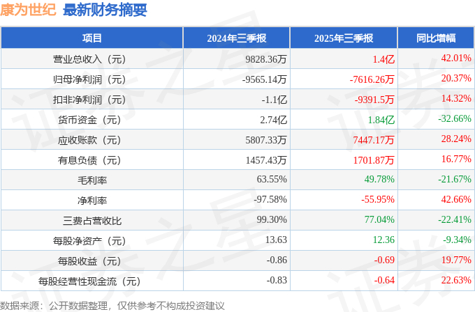 康为世纪(688426)2025年三季报简析:营收上升亏损收窄,公司应收账款体量较大