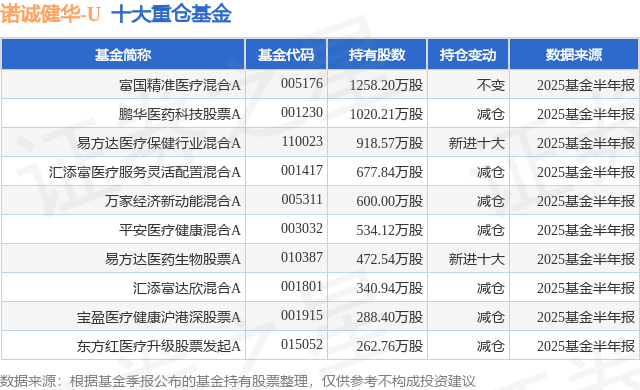 重仓诺诚健华-U的前十大公募基金请见下表: