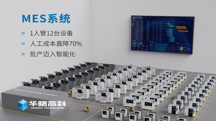 华曙高科MES系统包含了生产管理、质量管理、物料管理、设备管理、报警管理、安全参数监测六大模块,使1个人就可以管控12台设备,不仅是使人工成本大幅减少,更重要的是使生产变得“透明化和智能化”。