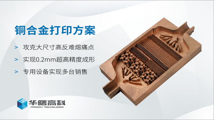 铜的高反射特性严重限制了它的产业化应用,导致其远不如不锈钢、铝合金等材料使用那么广泛。华曙高科2025年在铜合金3D打印方面取得了三项突破——高效率、高精度与市场销售。