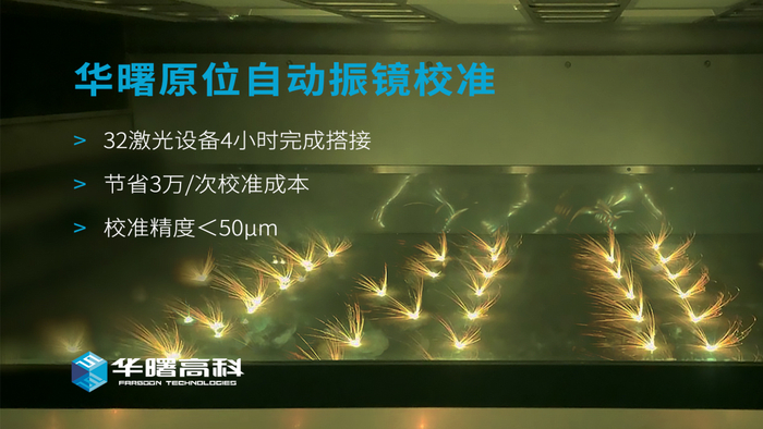 针对新技术发展阶段的新问题,华曙高科自主研发了高效的原位自动振镜校准技术,它基于高信噪比信号处理技术与自研算法,能够实现振镜搭接校准。具体实践发现,32激光搭接校准的时间被压缩至4小时以内,效率提升了18倍,校准精度100%优于50μm;且校准过程不需要开启舱门,使校准环境与实际工作环境一致,避免了环境差异带来的生产问题。