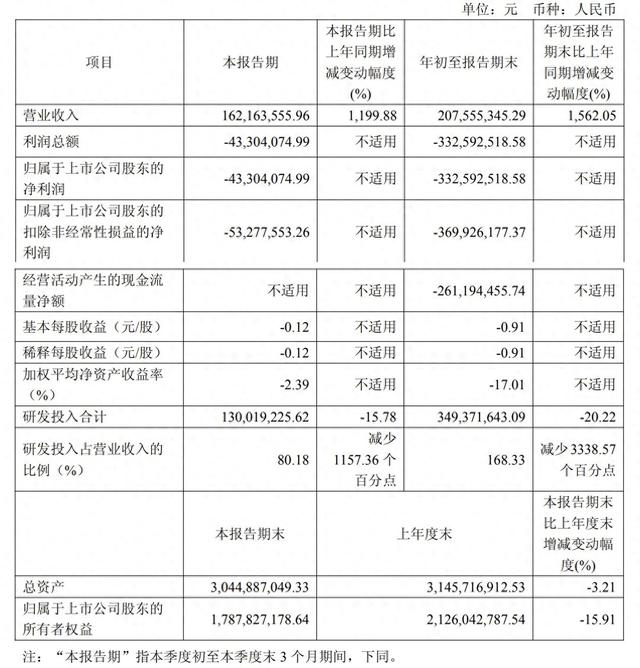 据智翔金泰(688443.SH)日前公布的第三季度业绩报显示,其单季度实现营收1.62亿元,同比暴增1199.88%,扣非归母净利润为亏损5327.76万元,较去年同期亏损1.87亿元大幅收窄。