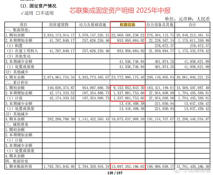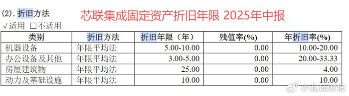 机器设备是芯联集成占比最大的固定资产,根据中报数据,机器设备的折旧年限在5-10年之间,折旧率在10-20%之间。