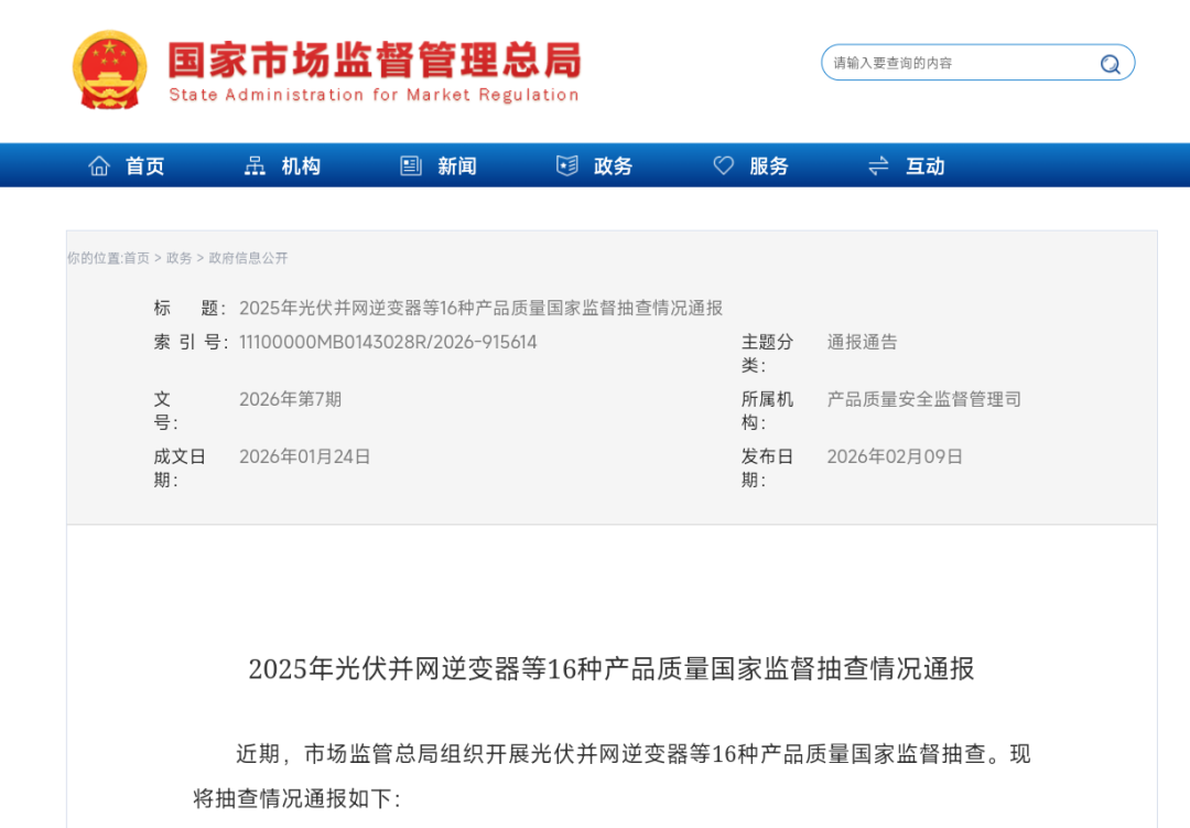 最近,国家市场监管总局发布了产品质量国家监督抽查结果,光伏并网逆变器领域出现了一个令人不安的数据:抽查的20批次产品中,3批次被发现不合格。
