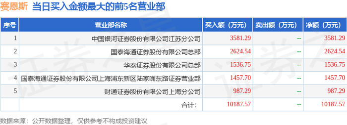 10月13日赛恩斯(688480)龙虎榜数据:机构净卖出4789.71万元
