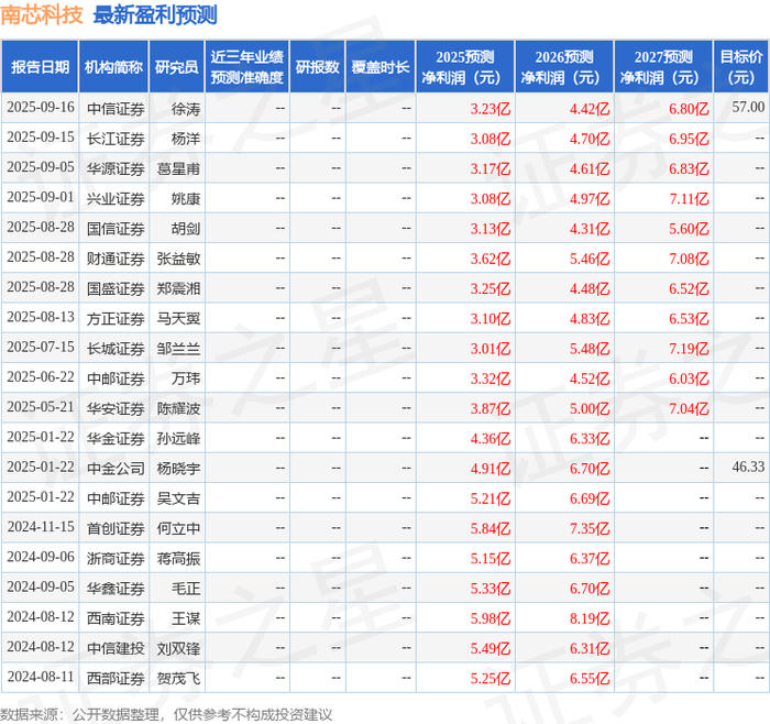最新盈利预测明细如下: