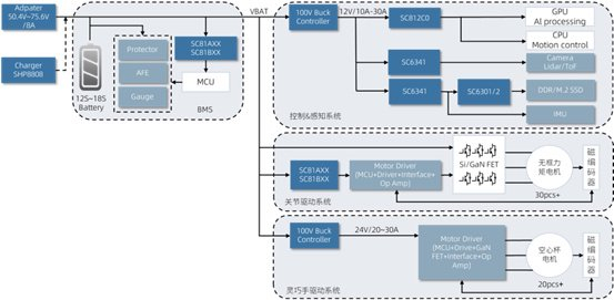 3)高串数电池应用的可靠性需求: 为提供足够动力,人形机器人普遍采用高串数电池组(如18串、21串等),这要求电源管理芯片具备高耐压(通常需100V及以上)、高可靠性,以确保系统安全。