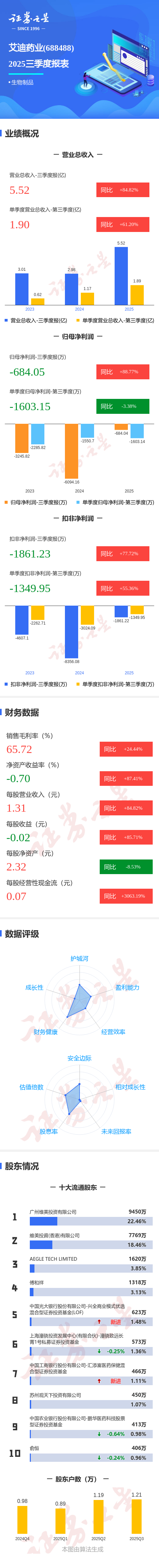 图解艾迪药业三季报:第三季度单季净利润同比下降3.38%
