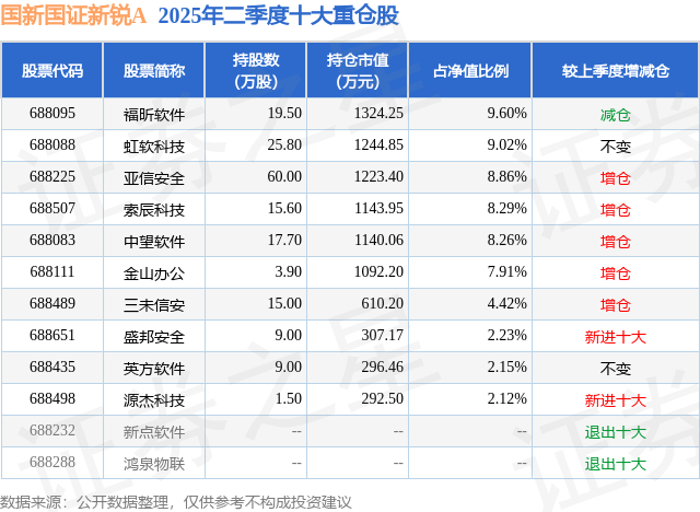 根据2025基金半年报公募基金重仓股数据,重仓该股的公募基金共1家,其中持有数量最多的公募基金为国新国证基金的国新国证新锐A。国新国证新锐A目前规模为1.37亿元,最新净值1.616(10月16日),较上一交易日下跌2.0%,近一年上涨43.52%。该公募基金现任基金经理为张洪磊。张洪磊在任的基金产品包括:国新国证新利混合A,管理时间为2025年6月19日至今,期间收益率为7.68%。