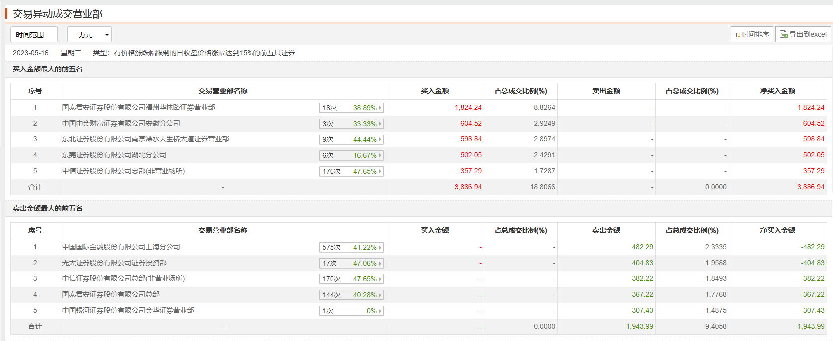 具体来看,国泰君安证券福州华林路证券营业部、中国中金财富证券有限公司安徽分公司分别买入1824.24万元、604.52万元;中国国际金融上海分公司、光大证券证券投资部分别卖出482.29万元、404.83万元。