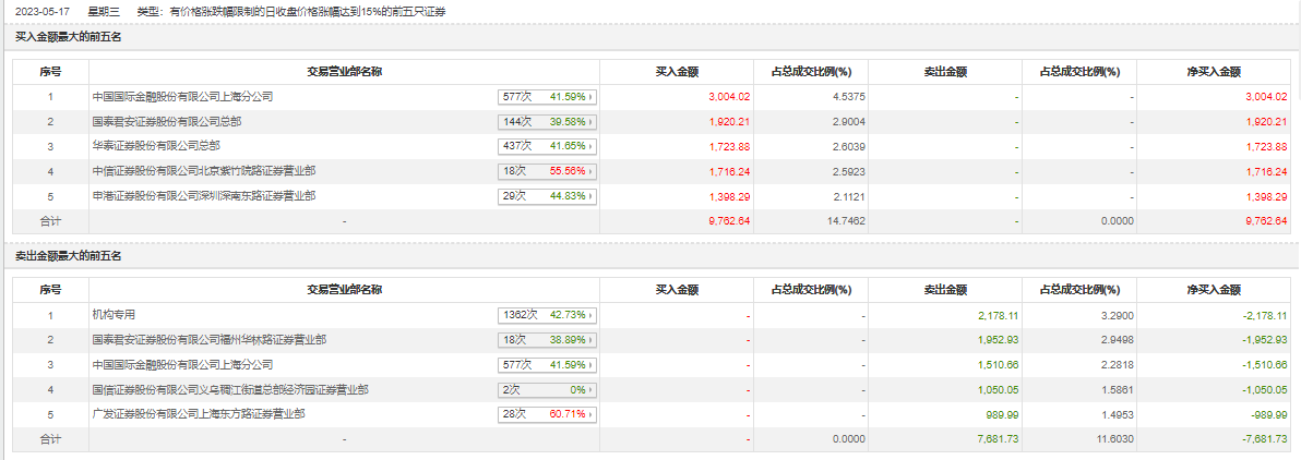 具体来看,机构合计净卖出2178.11万元。此外,中国国际金融上海分公司、国泰君安证券总部分别买入3004.02万元、1920.21万元;国泰君安证券福州华林路证券营业部、中国国际金融上海分公司分别卖出1952.93万元、1510.66万元。
