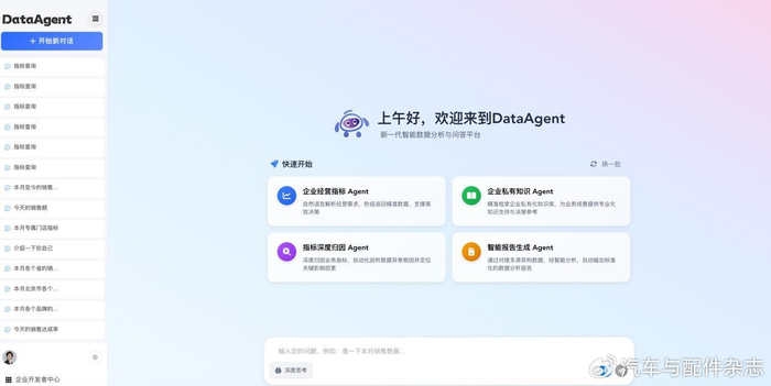 Data Agen分析产品体系作为新一代企业数据智能分析服务平台,基于Chat与数字人智能交互模式,实现对企业业务场景中内外部数据的融合分析,提供从查询、业务归因到策略建议的全链路数据智能能力。在行业垂直大模型的加持下,智能体对业务场景数据的理解深度远超常规同类产品。其中,面向以关系数据库为主的结构化数据分析的智能体,能够有效满足企业在多数业务场景(如销售分析、经营分析等)中,从常规分析到深度挖掘的快速响应需求。目前,产品开始应用于部分行业头部客户的销售与供应链等场景中,将显著提升相关基层用户的业务效率。