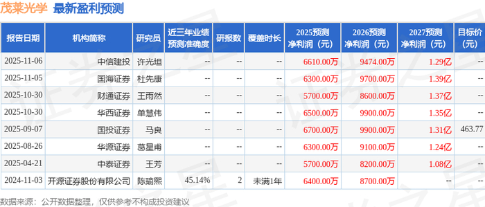 茂莱光学:11月27日接受机构调研,中泰证券、西部利得基金等多家机构参与