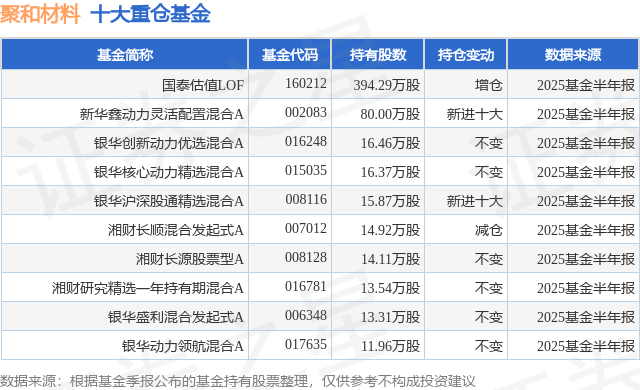 重仓聚和材料的前十大公募基金请见下表: