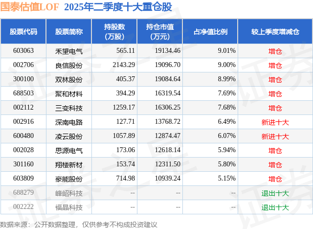 根据2025基金半年报公募基金重仓股数据,重仓该股的公募基金共15家,其中持有数量最多的公募基金为国泰基金的国泰估值LOF。国泰估值LOF目前规模为10.83亿元,最新净值4.1896(10月13日),较上一交易日下跌2.12%,近一年上涨67.44%。该公募基金现任基金经理为王兆祥。
