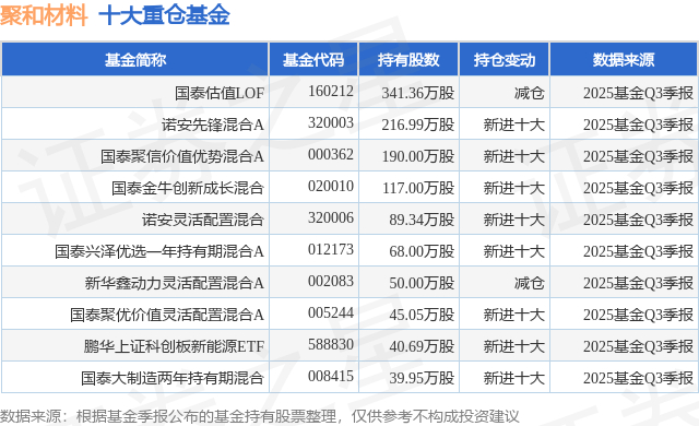 重仓聚和材料的前十大公募基金请见下表: