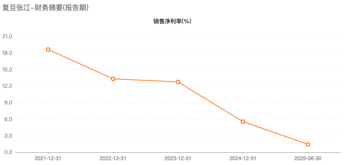从最新财务数据来看,复旦张江的盈利能力正大幅下降。