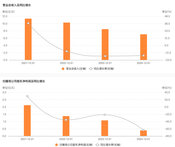 根据公司2025年半年度报告,上半年营业收入3.9亿元,同比下降4.42%;归母净利润仅572万元,同比下降91.89%;扣非净利润更是亏损949万元,同比由盈转亏。