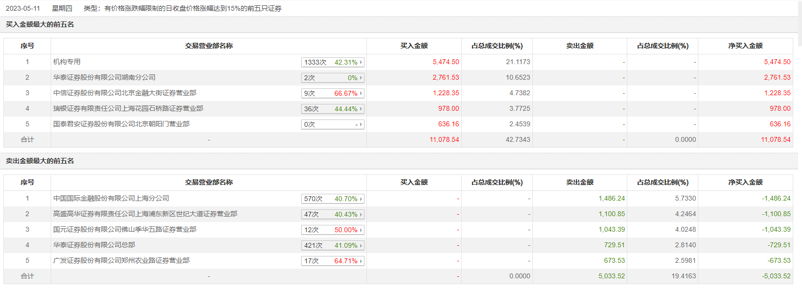 具体来看,机构合计净买入5474.5万元。此外,华泰证券湖南分公司、中信证券北京金融大街证券营业部分别买入2761.53万元、1228.35万元;中国国际金融上海分公司、高盛高华证券上海浦东新区世纪大道证券营业部分别卖出1486.24万元、1100.85万元。