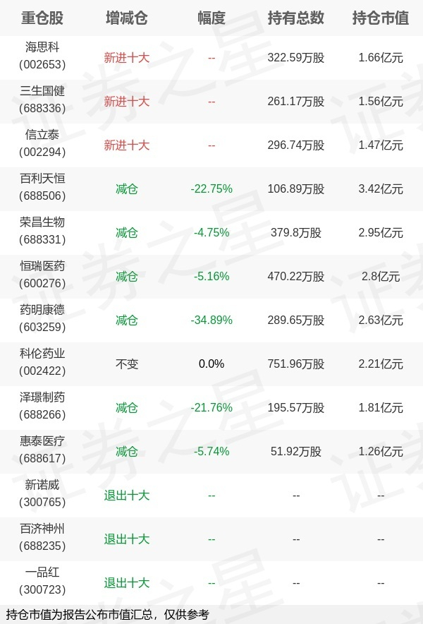 广发基金吴兴武旗下广发保健A年报最新持仓,重仓百利天恒