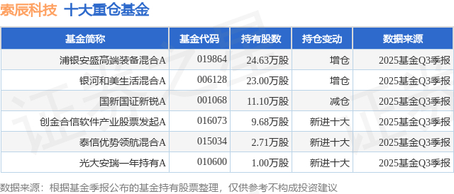根据2025基金Q3季报公募基金重仓股数据,重仓该股的公募基金共6家,其中持有数量最多的公募基金为浦银安盛基金的浦银安盛高端装备混合A。浦银安盛高端装备混合A目前规模为1.6亿元,最新净值2.0394(11月14日),较上一交易日下跌1.22%,近一年上涨60.7%。该公募基金现任基金经理为李浩玄。李浩玄在任的基金产品包括:浦银安盛科技创新一年持有混合A,管理时间为2022年12月21日至今,期间收益率为60.67%;浦银安盛新兴产业混合A,管理时间为2023年3月3日至今,期间收益率为47.97%;浦银安盛先进制造混合A,管理时间为2024年9月13日至今,期间收益率为52.88%。
