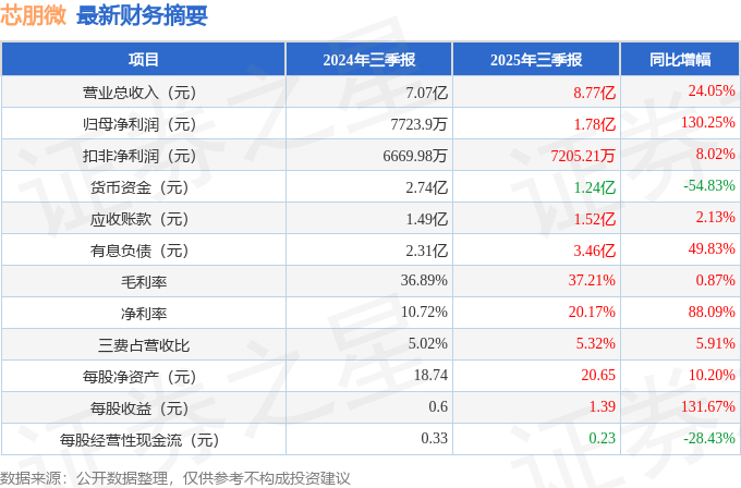 芯朋微(688508)2025年三季报简析:营收净利润同比双双增长,盈利能力上升