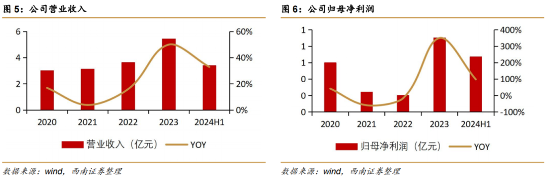 事件:公司发布2024年半年度报告,实现营业收入3.4亿元,同比+32.8%;实现归母净利润6721.1万元,同比+97.8%;实现归母扣非净利润 6601.3万元,同比+119.1%。