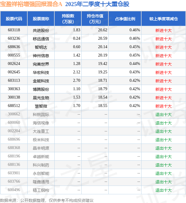 宝盈祥裕增强回报混合A的前十大重仓股如下: