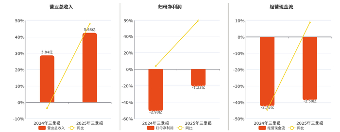 公司营业总收入为5.68亿元,在已披露的同业公司中排名第112。归母净利润为-1.22亿元,在已披露的同业公司中排名第151。经营活动现金净流入为-2.50亿元,在已披露的同业公司中排名第149。