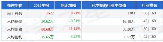 证券之星显示,苑东生物2024年员工总数1522人,同比增8.71%;人均薪酬20.62万元,同比减0.51%。