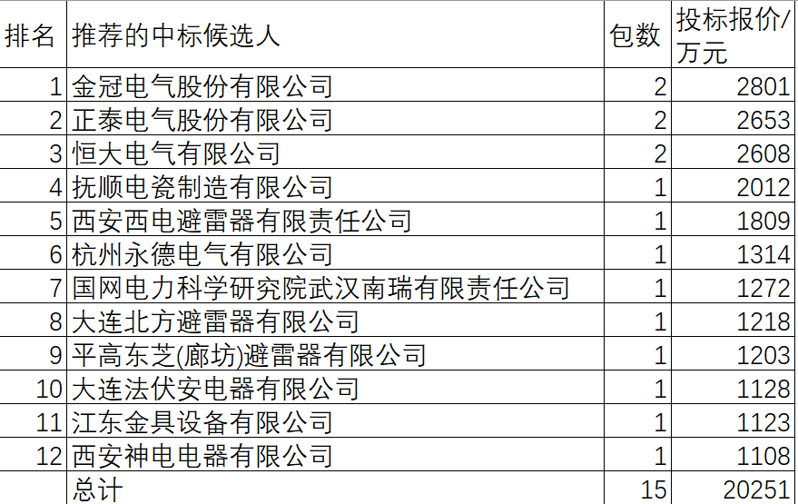 国网2025-6避雷器2亿12企分,金冠电气13.8%夺冠正泰13.1%亚军恒大12.9%季军