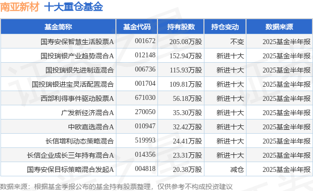 10月16日南亚新材跌7.84%,国寿安保智慧生活股票A基金重仓该股