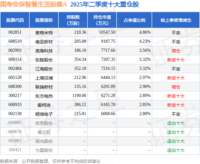 国寿安保智慧生活股票A的前十大重仓股如下: