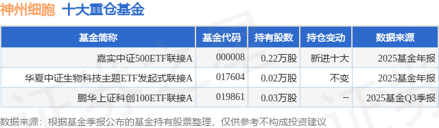 重仓神州细胞的公募基金请见下表: