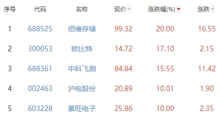 其中,佰维存储、欧比特、中科飞测、沪电股份、景旺电子位列板块涨幅前五位,涨幅分别为20.00%、17.10%、15.55%、10.01%、10.00%。