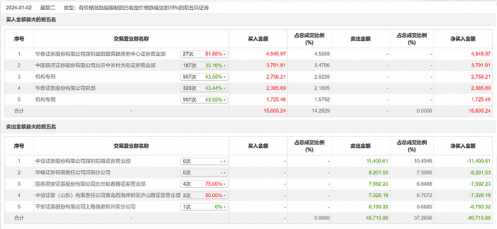 龙虎榜丨佰维存储今日20CM跌停,中信证券深圳后海营业部净卖出1.14亿元