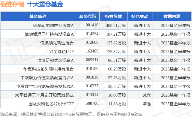 根据2025基金半年报公募基金重仓股数据,重仓该股的公募基金共27家,其中持有数量最多的公募基金为信达澳亚基金的信澳新能源产业股票A。信澳新能源产业股票A目前规模为68.64亿元,最新净值5.054(10月16日),较上一交易日下跌0.39%,近一年上涨54.51%。该公募基金现任基金经理为冯明远。冯明远在任的基金产品包括:信澳研究优选混合A,管理时间为2020年6月22日至今,期间收益率为53.87%;信澳领先智选混合,管理时间为2021年6月30日至今,期间收益率为-9.01%;信澳智远三年持有期混合A,管理时间为2022年1月25日至今,期间收益率为1.14%。