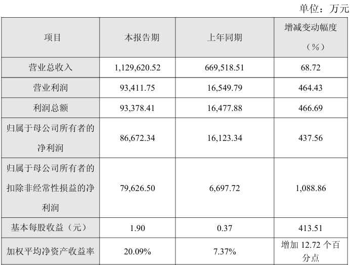 报告期内,公司总资产为155.71亿元,较期初增长95.59%;归母所有者权益为54.54亿元,较期初增长126.13%;每股净资产为11.68元,较期初增长108.94%。