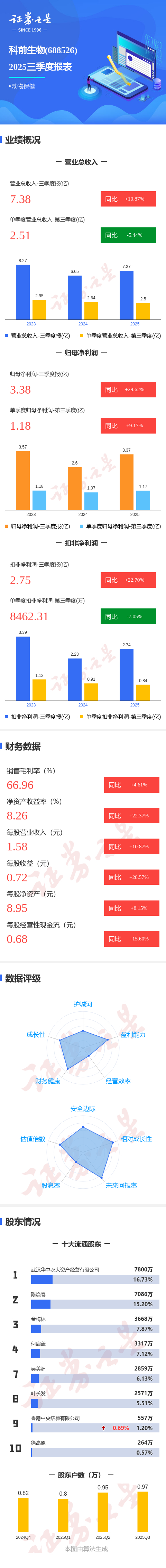 图解科前生物三季报:第三季度单季净利润同比增长9.17%