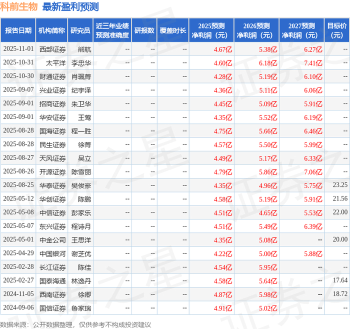 开源证券股份有限公司陈雪丽,王高展近期对科前生物进行研究并发布了研究报告《公司信息更新报告:降本增效盈利向上,高研发投入驱动成长》,给予科前生物买入评级。